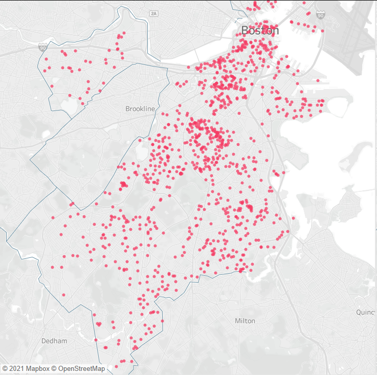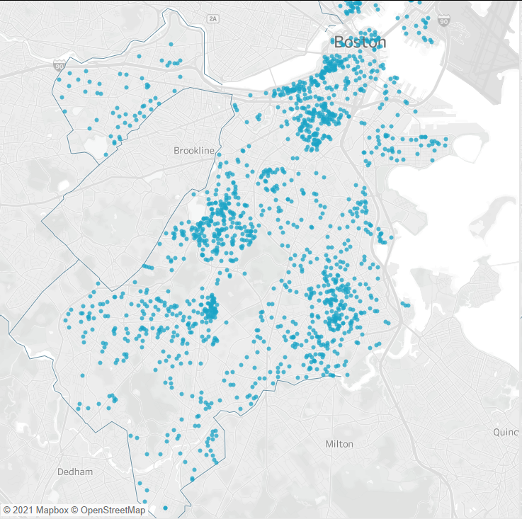 We'll stay small. There are folks from around the state, and indeed the country, who have contributed to candidates running for Mayor of Boston. Looking just at Boston however, here's what folks who are donating to the following candidates list as their address: